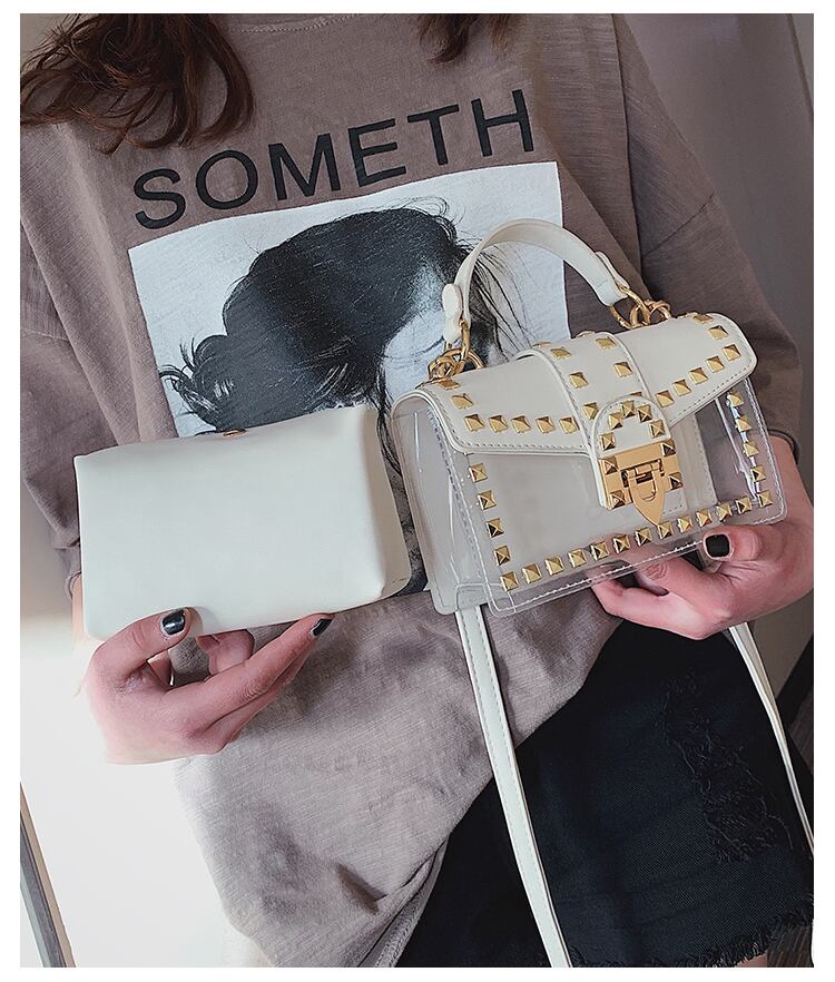 バッグレディースバッグ2020新しいファッションゼリーポータブルクロスボディバッグネットレッドワイルドトランスペアレントショルダースモールスクエアバッグ Tiancai_Wing_Bag4008877
