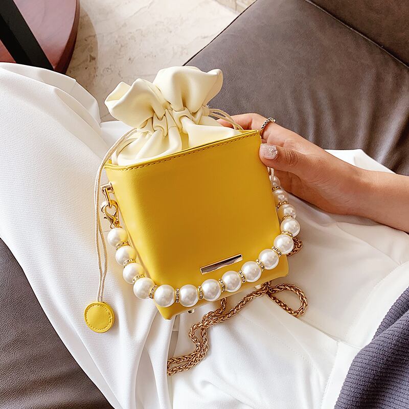 新しい質感の小さなバッグ女性バッグ2020新しいトレンディなワイルドパールチェーンクロスボディバッグワイルドバケットバッグ Tiancai_Wing_Bag3079269