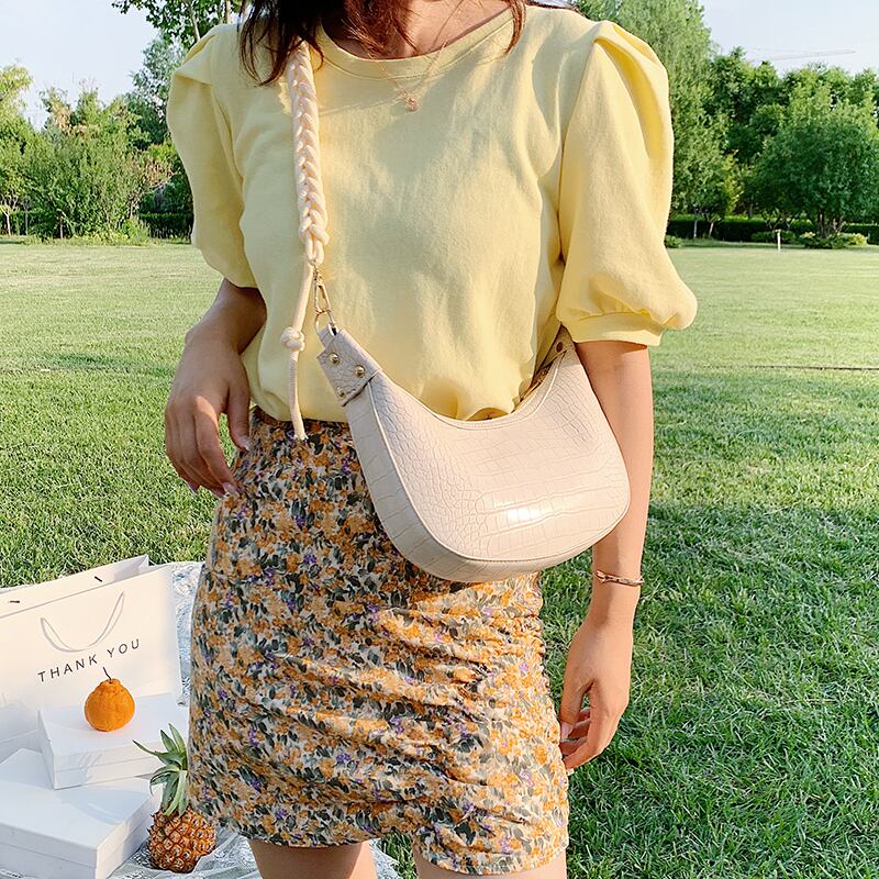 テクスチャ小さなバッグ女性バッグ2020夏の新しい潮ネット赤ファッションショルダーメッセンジャーバッグシンプルな三日月形バッグ Tiancai_Wing_Bag2549952