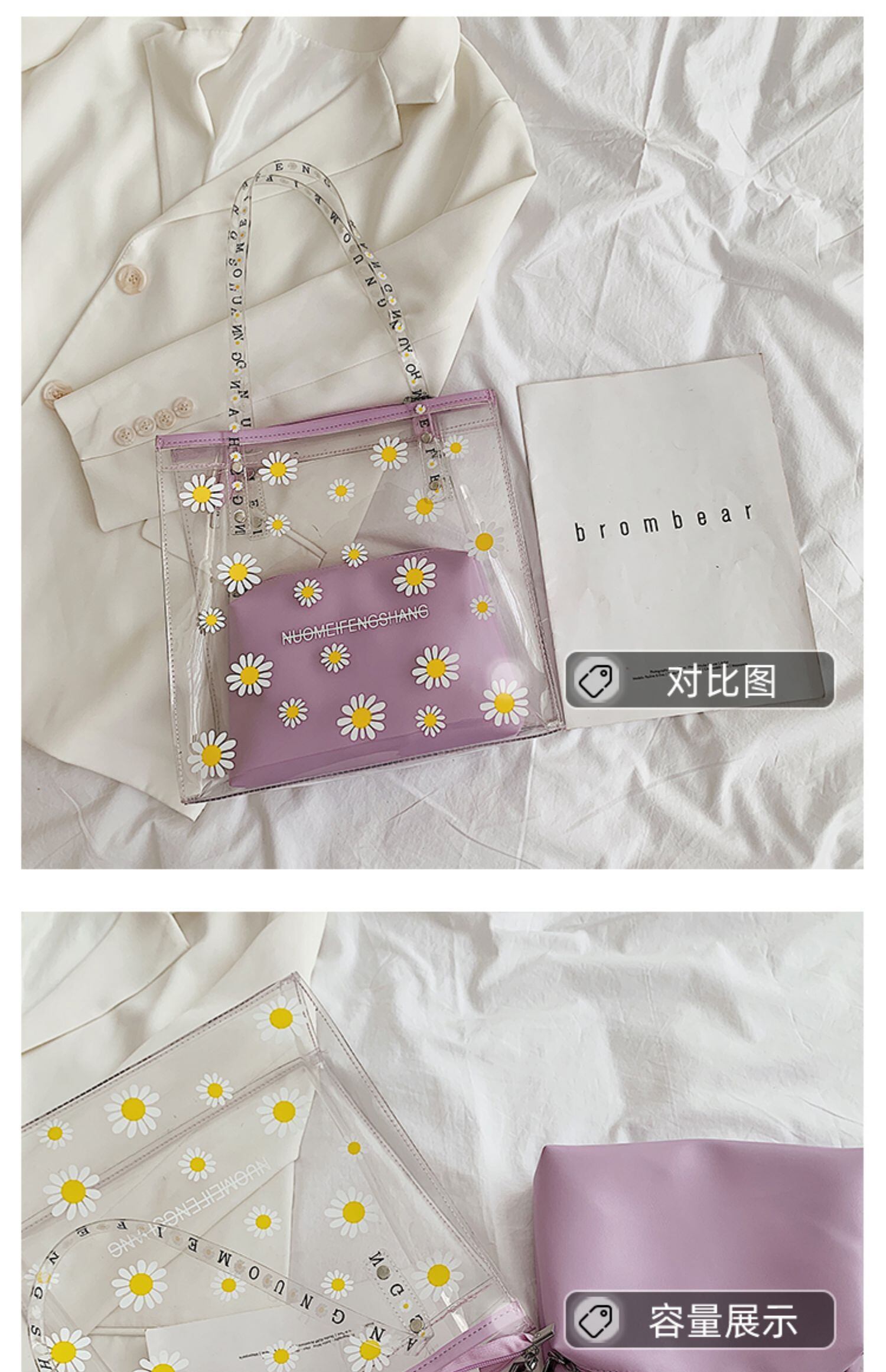夏の大きなバッグ女性のバッグ2020新しいタイドネット赤いファッション小さなデイジーショルダーバッグ野生の透明なトートバッグ Tiancai_Wing_Bag7911996