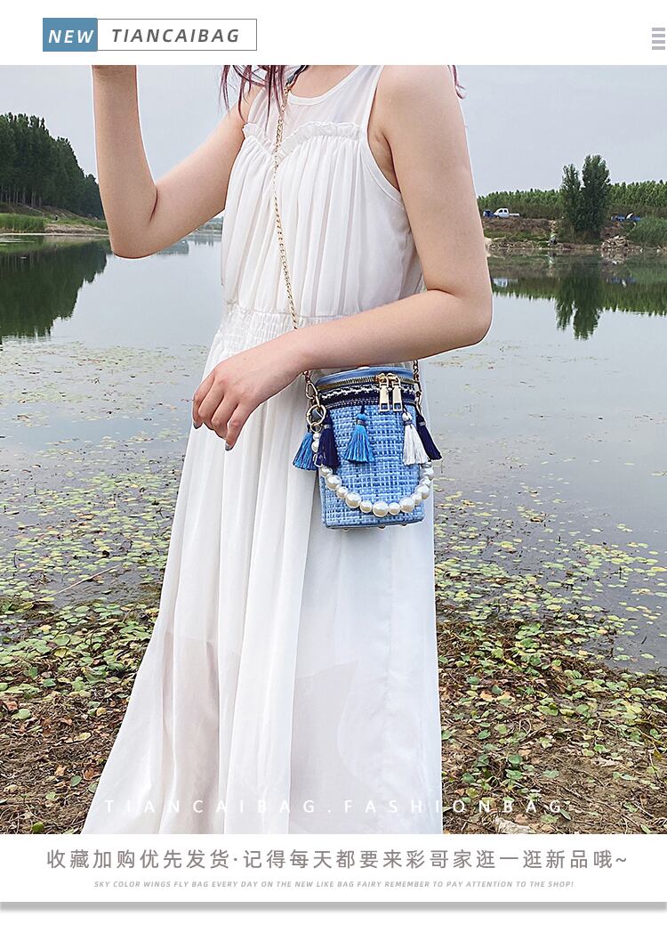 レディーススモールバッグ2020 Wave Insワイルドチェーンショルダーメッセンジャーバッグネットレッドファッションパールバケットバッグ Tiancai_Wing_Bag9844377