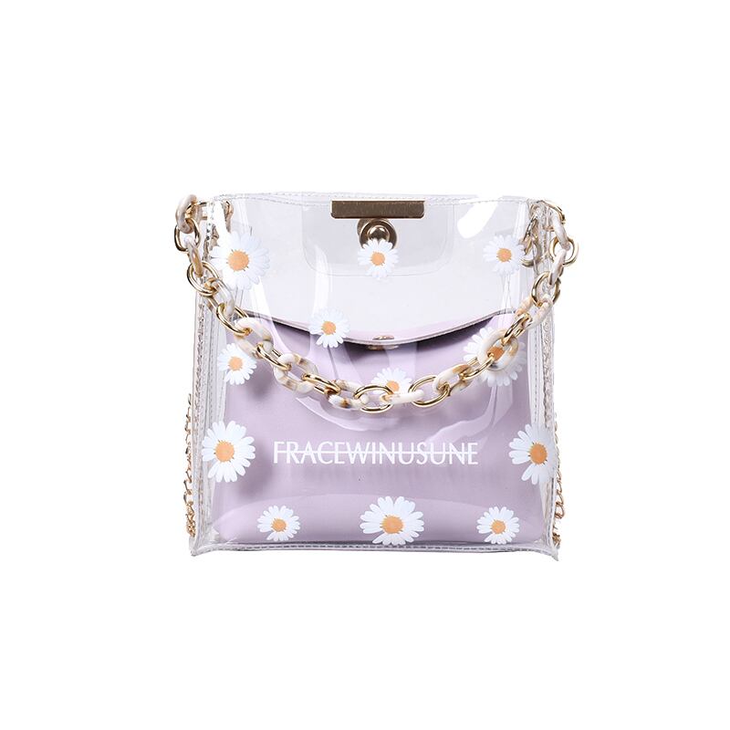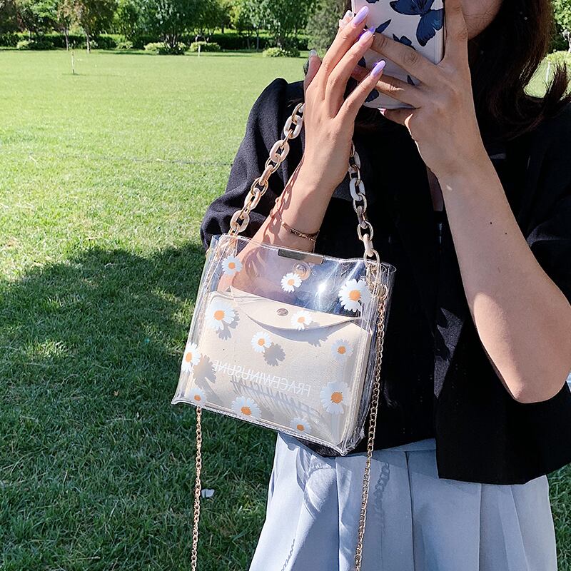 スモールバッグレディースバッグ2020夏の新しい潮ネット赤ファッション透明チェーンメッセンジャーバッグワイルドショルダーバケットバッグ Tiancai_Wing_Bag9246335