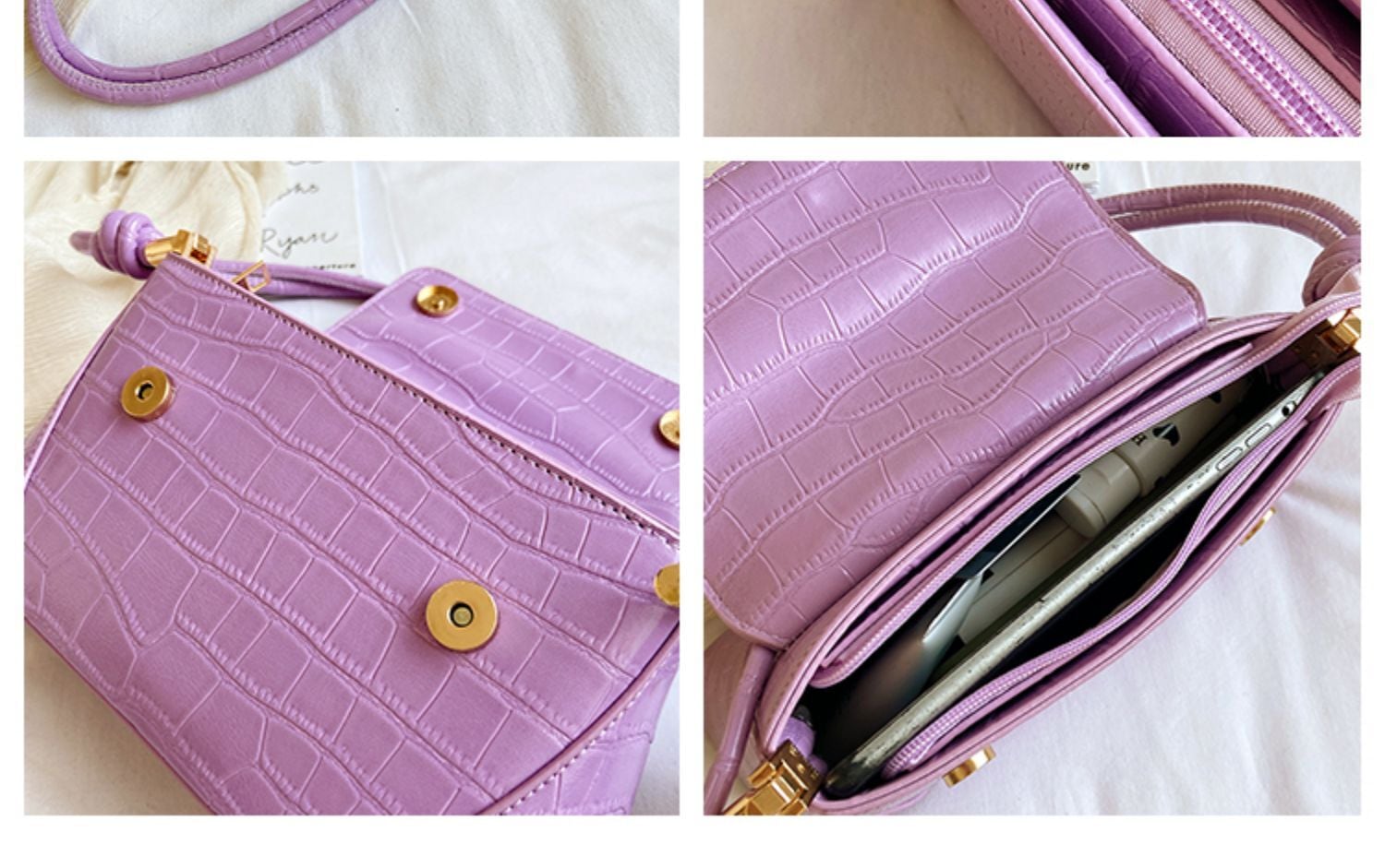 色:白い,カーキ,黒,紫のワニ柄,白いワニ柄