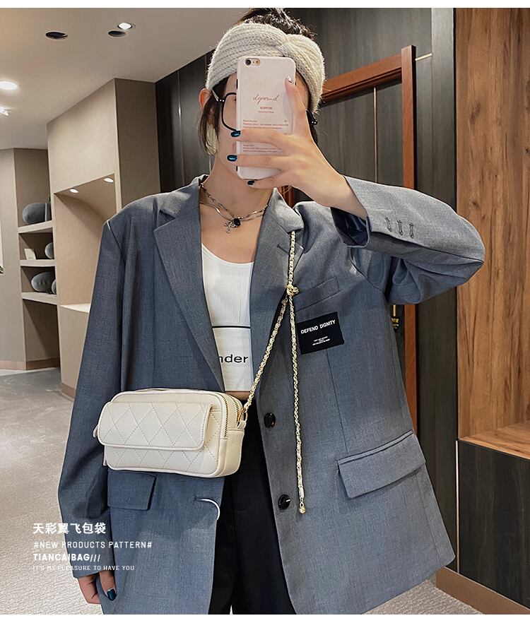 テクスチャードサシェバッグ女性バッグ2020新しいトレンディネットレッドワイルドスモールスクエアバッグひし形チェーンバッグショルダーメッセンジャーバッグ Tiancai_Wing_Bag8133441