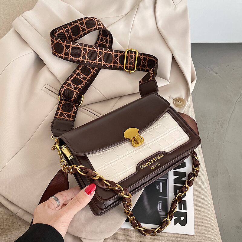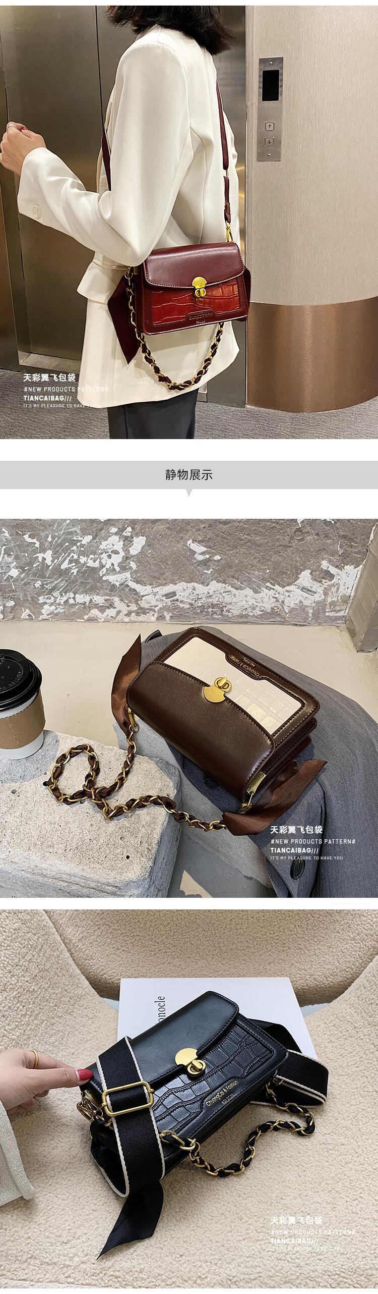 秋冬レトロスモールバッグレディース2020新しい流行のファッションワイルドワイドショルダーストラップメッセンジャーバッグチェーンワンショルダースモールスクエアバッグ Tiancai_Wing_Bag27732919719