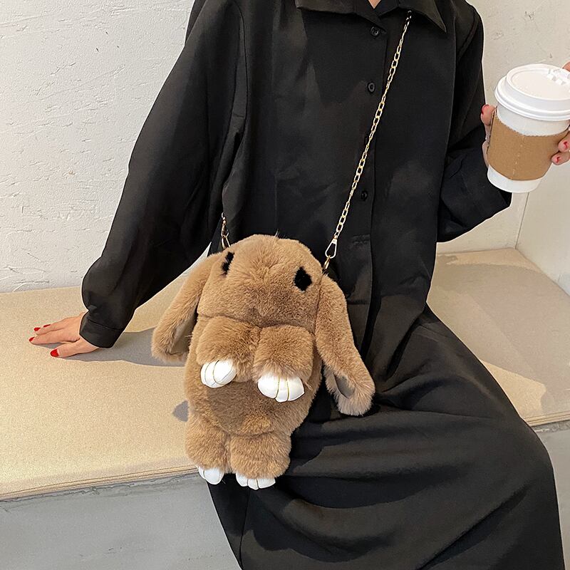 かわいい漫画のドレス死んだウサギの毛皮のバッグ女性2020新しい流行の秋と冬のオールマッチぬいぐるみチェーンワンショルダーメッセンジャーバッグ Tiancai_Wing_Bag88036045656