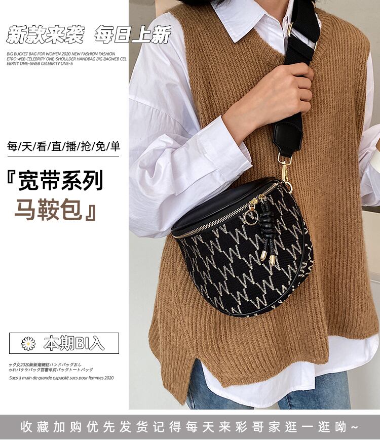 秋冬サドルバッグウィメンズバッグ2020トレンディネットレッドワイドショルダーストラップメッセンジャーバッグキャンバスショルダーバッグ Tiancai_Wing_Bag48049110861