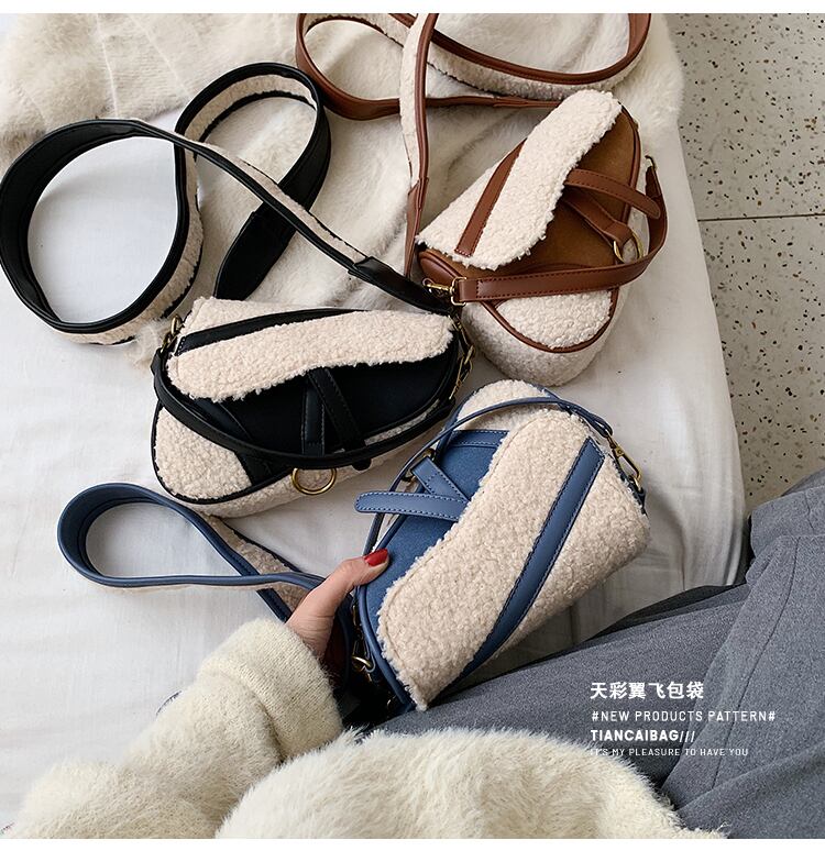 秋冬のスモールバッグ、レディースバッグ、2020年の新流行ファッション、バージョン、今年人気、クロスボディサドルバッグ、シングルショルダーヘアリーバッグ Tiancai_Wing_Bag48980435637
