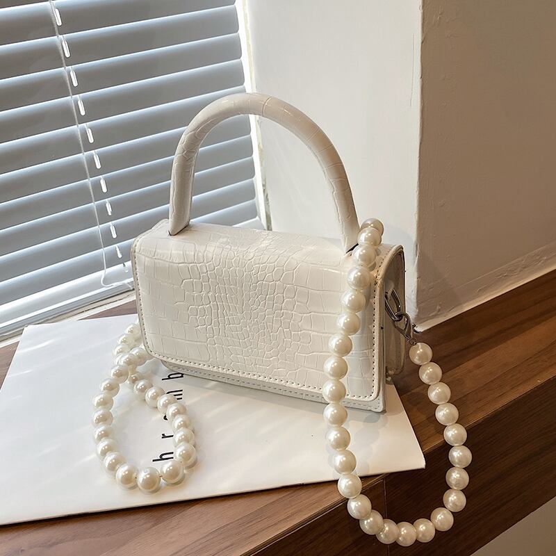 パターンサマーレッドパールチェーン 夏物 真珠 スクウェア メッセンジャーバッグ Tiancai_Wing_Bag29775329169