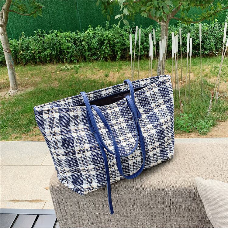サマー格子柄シングル 夏物 トートバッグ Tiancai_Wing_Bag65107838532