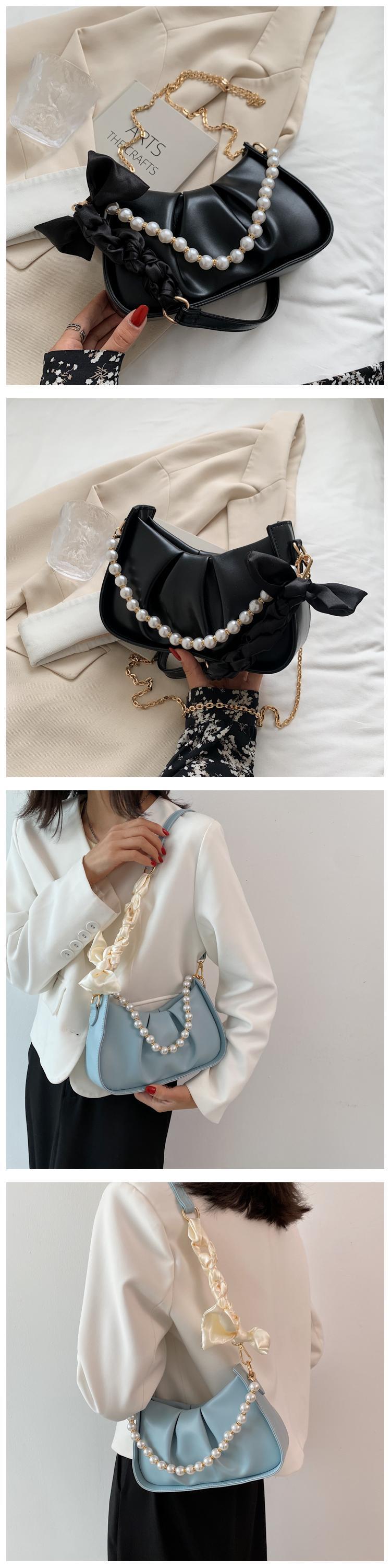 サマーパールチェーン スカーフ ワンショルダー 夏物 クロスボディ シルク 真珠 Tiancai_Wing_Bag34066189641